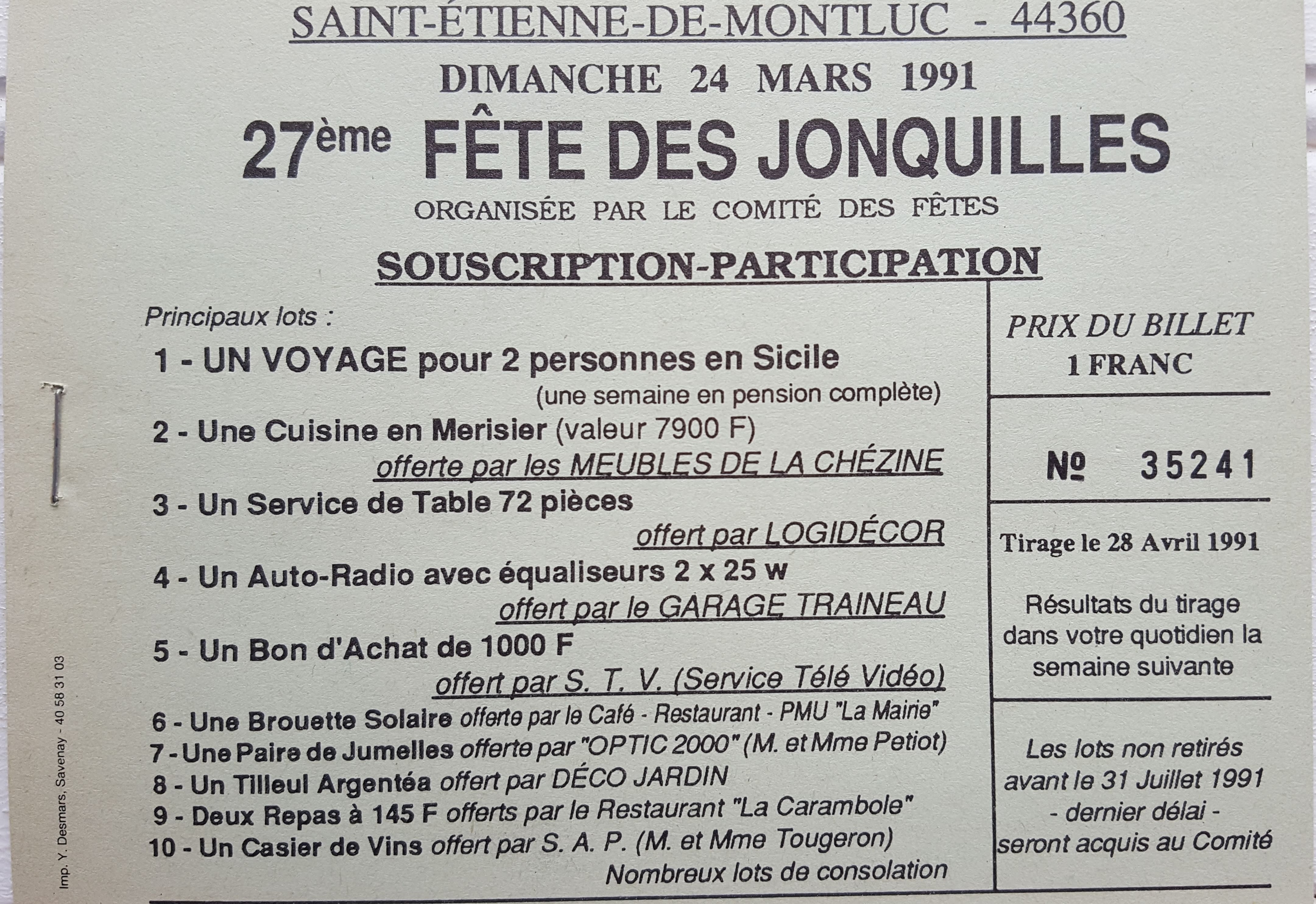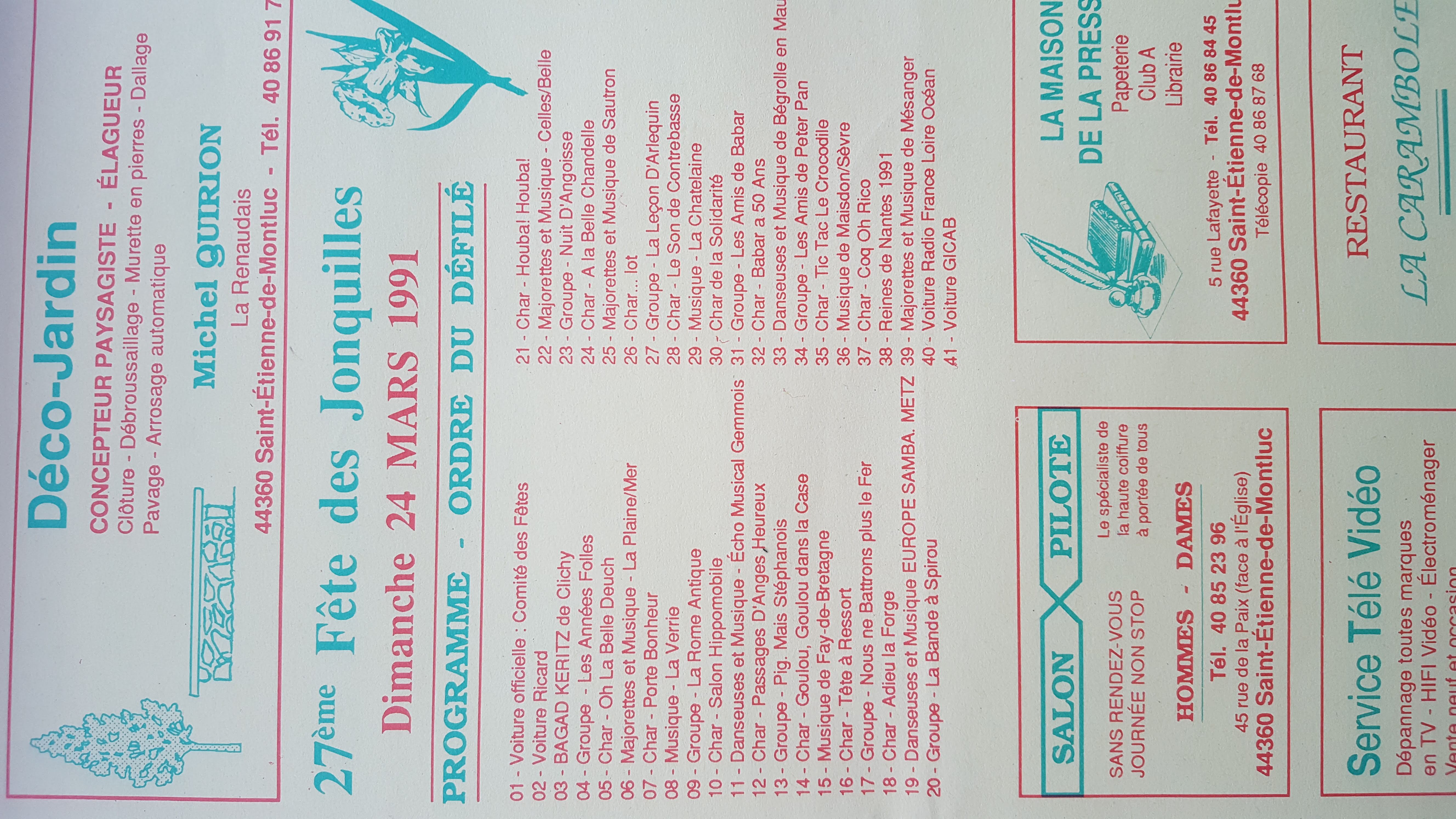 ordre du défilé1991 - 27e Fête des jonquilles - 24 mars 1991 |